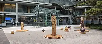 Following the implementation of the Local Government (Dublin) Act 1993, which created Fingal County Council, the county council initially met at the former offices of the abolished Dublin County Council, an office block at 46-49 O'Connell Street, Dublin.[1][2] The new building, which was designed by Bucholz & McEvoy in association with the Building Design Partnership, was purpose-built for the county council and completed in 2000.[3] It has full-length glass wall engineered by RFR, a French firm who also carried out the engineering for the Louvre Pyramid.[3] There is a 150-year-old Himalayan Cedar tree growing in the centre of the building.[4]