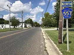 County Route 557 (CR 557) is a county highway in the U.S. state of New Jersey. The highway extends 36.00 miles (57.94 km) from Delsea Drive (Route 47) in Dennis Township to Main Street (CR 555) in Franklin Township. It is also referred to as Tuckahoe Road.