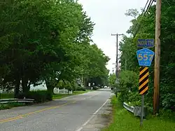 CR 557 begins at an intersection with Route 47 in Dennis Township, Cape May County, heading northeast on two-lane undivided Washington Avenue into forested areas. The route crosses into Woodbine and enters residential areas, intersecting CR 611 and CR 550/CR 638. At the intersection with the latter, CR 557 forms a concurrency with CR 550 and the two routes pass a mix of homes and businesses as it comes to Dehirsch Avenue, where CR 550 splits from CR 557 by heading southeast on that road. From this point, CR 557 continues north into Upper Township and becomes North Dennis-Marshallville Road as it continues into forested areas with occasional homes. Farther north, the route intersects CR 617 and turns east onto Mill Road, heading into residential areas in the community of Tuckahoe. The road crosses the Cape May Seashore Lines railroad line south of the Tuckahoe station, the Beesleys Point Secondary railroad line operated by the Cape May Seashore Lines railroad, and CR 659 within a short distance of each other before reaching a junction with Route 50 and CR 664. CR 557 forms a concurrency with Route 50 and the two routes head north through residential and commercial areas and encounter the eastern terminus of Route 49 before leaving Tuckahoe.[1][2]