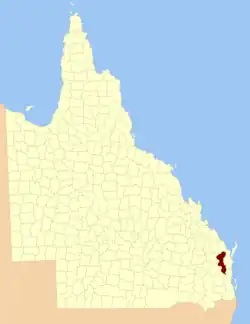 The county consists of the inland region forming the western parts of the Gympie and Fraser Coast regions.[2] It was officially named and bounded by the Governor in Council on 7 March 1901 under the Land Act 1897.[1]