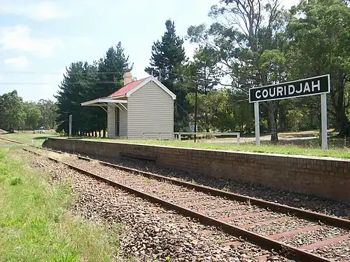 Couridjah railway station is a heritage-listed disused railway station located on the Picton–Mittagong loop railway line in the south-western Sydney settlement of Couridjah in the Wollondilly Shire local government area of New South Wales, Australia. The property was added to the New South Wales State Heritage Register on 2 April 1999.[1]
