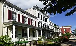 John Armstrong, a local developer and industrialist, built the Mechanic's Row houses circa 1816. They are considered among the finest examples of New Orleans-inspired architecture in Kentucky. The land on which Mechanics' Row sits once belonged to Edmund Martin who purchased the property in 1797 from John May. The name stems from the residents who were merchants and skilled craftsmen. An earlier name for the row houses was "Tub Row" owing to the tubs of ornamental shrubs that appeared on the porches each spring.[2]