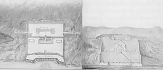 ![]() Plan and elevation of Cove Fort from a 1777 survey by Charles Vallancey | |