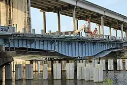 In the early 1910s, the bayou was formed by rice farmers. Since rice production skyrocketed over there, By 1911 almost all farmers in Orange County were using the bayou.[3] In 1940 the Cow Bayou Swing Bridge was created, the bridge was the last major component constructed along Texas State Highway 87. The bridge is 806 feet long and has 2 lanes.[4] In 1963 Congress improved the bayou by constructing a channel 100 feet wide and thirteen feet deep for 7.7 miles from its mouth to Orangefield. It wasn't till 1967 when the project came into effect since oil wells were blocking the construction plan.[5]