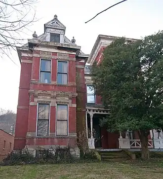 The Cox-Hord House is a three-story brick structure in Maysville, Kentucky designed by Cincinnati architect, Edwin Anderson, and built in 1880 at a cost of $49,000. The architectural style is eclectic with elements of Victorian Gothic, Italianate and Victorian Romanesque. It is considered an excellent example of the "Mauve Decade" (1880–1890) due to the "use of the finest materials and superb workmanship". Ceiling heights are 14' for the first floor, 12' for the second and 10' on the third. A variety of wood was used for interior trim including light and dark walnut, cherry, fruit wood and ebony.[1]