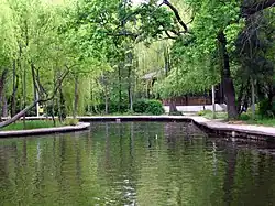 The park features an artificial lake, named the Heleşteu lake (in Romanian, heleşteu=pond). The lake was created when the park was built, in order to provide boat rides. Its water is brought in from the Buzău river via a small channel that circles the city. It features three equally-sized islands, one of which is reachable via a bridge, while the other two are reachable only by boat.