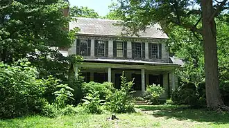 The house features two additions, one believed to have been constructed in the early 19th century and the second around the middle of that century.[2] These feature some unique architectural elements as well, such as Greek Revival moldings and an enclosed second story slanted porch. The house contains three brick chimneys, one in the back extension and two in the main section. The mantels in the front of the house are unique in the fact that they are ornately painted with pastoral scenes and motifs. Hinges on doors are of the traditional H and L bolt fashion. Screen doors windows were added in several places starting in 1925. The house itself is covered by wood weatherboards on both the main section and the addition, and the exterior is currently painted white.