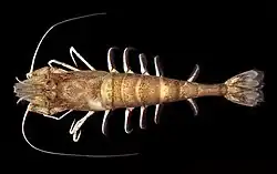 Crangon septemspinosa (sand shrimp), also known as seven-spined bay shrimp, is a species of shrimp commonly found along the Atlantic coast of North America, with a wide range spanning from Newfoundland to eastern Florida.[1] Sand shrimp is often found in eelgrass beds, salt marshes, and estuaries and can be found at depths to 450 m (1,480 ft). At maturity, they can reach about 7 to 7.5 cm in length. Its name derives from the sand-like coloration that helps camouflage the species with its environment.[2]