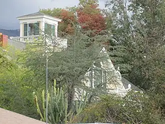 The northern portion was bought by James F. Crank in 1877. Crank came from New York and was impressed with the land, and soon planted citrus orchards and vineyards. Eliza Johnston's simple wood-frame house was moved to another location on the property, and still stands at 2072 Oakwood Street, Altadena. Crank built a much larger, more palatial home in 1882.[3] The house is a 2+1⁄2-story wood-frame Victorian mansion.