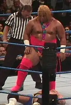 Crash made his pay-per-view debut at SummerSlam in August, where the Holly Cousins wrestled in a Tag Team Turmoil match, won by the Acolytes Protection Agency.[16][17] At Rebellion, the Holly Cousins competed against APA and Edge and Christian in a triangle match, which Edge and Christian won. On October 17, at No Mercy, the Holly Cousins defeated The New Age Outlaws by disqualification.[18] The next night on Raw is War, they defeated the Rock 'n' Sock Connection for the WWF Tag Team Championship.[19] They held the title until the November 4 SmackDown!, when they lost it to Mankind and his new partner, Al Snow.[20]
