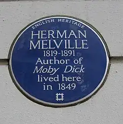 Herman Melville, author of Moby Dick, lived at No. 25 in 1849 when he visited London as a sailor during his youth.[2] A blue plaque marks the house.