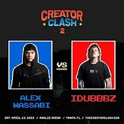 - ^ Hits, Random (January 24, 2023). "iDubbbz vs. Alex Wassabi Tops Creator Clash 2, April 15 At Amalie Arena In Tampa". Boxingscene.com. Retrieved January 24, 2023.