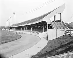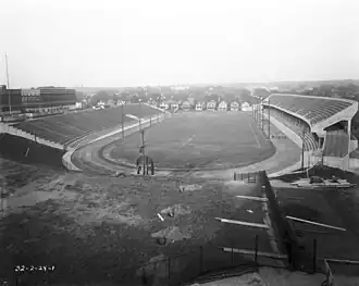 Constructed in 1924,[3] and opened 100 years ago in 1925,[2] it was a concrete stadium in the shape of an oval,[1] but lacked enclosed end zones.[4] Asymmetric, the larger grandstand on the south sideline was single level and included the press box, while the north grandstand had a second deck, bounded by Burt Street. After several seasons, lights were added, between the field and the running track.[5]