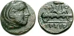 Crenides or Krenides (Ancient Greek: Κρενίδες) was an ancient Greek city located in Thrace, and later in ancient Macedonia, located in the region between the river Strymon and the river Nestos.[1] It was founded by colonists from Thasos in 360 BCE. Crenides was close to Mount Pangaion with its rich gold veins and to another Thasian colony, Datos. The two colonies provoked the Thracians but at the same time gave Philip II of Macedon the justification for penetrating the area and founding Philippi in 356 BCE. Philip intervened to protect the city when it was threatened by the Thracians under Kersobleptes.[2]