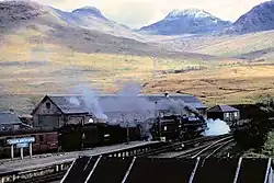 Crianlarich railway station is a railway station serving the village of Crianlarich in Scotland. It is located on the West Highland Line, sited 41 miles 25 chains (66.5 km) from Craigendoran Junction, near Helensburgh, with Ardlui to the south, and Tyndrum Lower and Upper Tyndrum to the north west, on the routes to Oban and Mallaig respectively, which diverge immediately north of the station.[3] ScotRail, who manage the station, operate most services (along with Caledonian Sleeper).