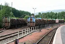 The area around the station is forested. The sidings on the west side of the station were used for loading timber until December 2008 when the carriage of Scottish timber by rail ceased in connection with the recession. As of June 2015, there is still no sign of the service being reinstated. Timber trains leaving the sidings at Crianlarich often paused at Arrochar and Tarbet to attach further wagons, the sidings at both stations are now used by the Area Civil Engineer for the storage of materials.