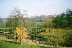 The former deer park of the house, known as "Cricket Park", was designed by D.D. (David) Davis, a noted horticulturist at the start of the 19th Century,[21] and was later turned into a wildlife park. The wildlife park was home to 600 rare and endangered species including lemurs, primates, camels, reptiles and wildfowl.[22] Questions were raised in the UK parliament in 1995 after a rare Asian elephant was euthanised at the park.[23][24] The wildlife park closed in 2009 and most of the larger animals were moved to other zoos around the country. Some of the smaller animals, such as the lemurs, were kept and the park was returned to gardens and lakes, re-opening in mid-2010.[25] The park has since closed again and very little remains of the enclosures or buildings.