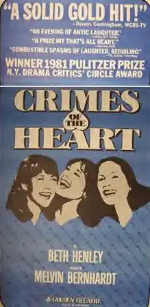 Crimes of the Heart is a play by American playwright Beth Henley. It is set in Hazlehurst, Mississippi in the mid-20th century. The play won the 1981 Pulitzer Prize for Drama and was nominated for the Tony Award for Best Play. In 1986, the play was novelized and released as a book, written by Claudia Reilly.[1]