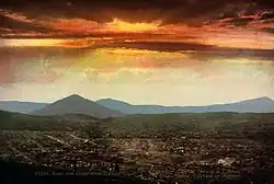 Cripple Creek is a statutory city that is the county seat of Teller County, Colorado, United States.[1] The city population was 1,155 at the 2020 United States census.[5] Cripple Creek is a former gold mining camp located 20 miles (32 km) southwest of Colorado Springs near the base of Pikes Peak. The Cripple Creek Historic District, which received National Historic Landmark status in 1961, includes part or all of the city and the surrounding area. The city is now a part of the Colorado Springs, CO Metropolitan Statistical Area and the Front Range Urban Corridor.