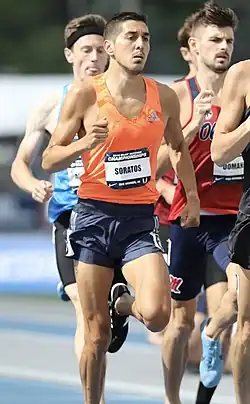 Cristian Soratos (born September 26, 1992) is an American professional middle-distance runner. Born in Salinas, California, he first took up competitive running at Salinas High School. He then ran at Hartnell College where he eventually became All-State, after which he was recruited to Montana State University. After running several races at high altitude, Soratos ran his first sub-4 minute mile in 2015, and went on to emerge as one of the fastest collegiate runners in the United States. On June 25, 2015, he became a professional runner when he signed a contract to be sponsored by Adidas.[2]