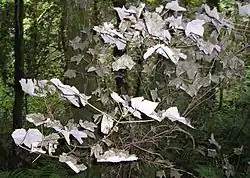 The fungal pathogen Cristulariella depraedans is found in Europe and North America and mostly affects trees in the genus Acer. Trees affected in Germany and Britain are primarily the sycamore (A. pseudoplatanus) and the Norway maple (A. platanoides), while in North America the most affected are A. platanoides, the red maple (A. rubrum), the sugar maple (A. saccharum), the silver maple (A. saccharinum), the mountain maple (A. spicatum) and the vine maple (A. circinatum). In British Columbia it has also been reported on goatsbeard (Aruncus),[2] and in South and Central America on the bullet tree (Bucida buceras). Studies in Germany between 1996 and 1999 extended the host range and a study published in 2000 recorded the pathogen's occurrence on 21 species of woody and herbaceous plants outside the maple group.[3] It was shown to be present in Poland in a study lasting from 1996 to 2006, and beside Acers, the host range there included hornbeam (Carpinus betulus), dogwood (Cornus sanguinea), hazel (Corylus avellana), beech (Fagus sylvatica), honeysuckle (Lonicera xylosteum), bird cherry (Prunus padus), pedunculate oak (Quercus robur) and lime (Tilia cordata).[4] It is unclear whether this increased host range is because of more intensive study or whether environmental factors have encouraged the fungus to attack new hosts.[3]