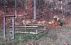 Crngrob is the site of five known mass graves from the end of the Second World War. The Crngrob 1–5 mass graves (Slovene: Grobišče Crngrob 1–5)—also known as the Steps Mass Grave (Grobišče pri štengah) or the Balant Spruce Woods Mass Grave (Grobišča v Balantovem smrečju)—are located along a gravel path in the woods southwest of the settlement. They contain the remains of 200 to 300 victims, including leading members of the government of the Independent State of Croatia and their family members, and possibly Slovene Home Guard members as well.[6][7][8][9][10] Most of the victims were murdered between May 22 and 25, 1945. Some were killed as early as May 20, and some also after May.[11]