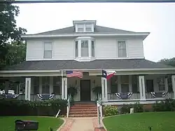 The town was named after Davy Crockett,[6] who had camped nearby on his way to the Alamo; the site was very near the Old San Antonio Road.[7] Andrew Edwards Gossett, a Texas Revolution soldier from Maury, Tennessee, along with his father and brother, donated the land for the town in 1836, and named it after Crockett, whom they had previously known.[7] The town was incorporated in 1837, and a post office was granted the following year. Crockett was connected to Nacogdoches by stage service. In 1839 raids by the Alabama-Coushatta and Cherokee Indians forced the town's residents to take shelter in the fortified log courthouse. Crockett was a training center for Confederate conscripts during the Civil War.