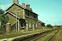 The station building on 15 August 2006 having lost some of its original features including the platform and some chimneys. There is a level crossing here.