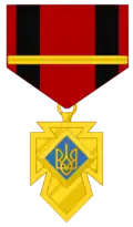 The Cross of Merit (Ukrainian: Хрест Заслуги) was an award of Ukrainian Insurgent Army. It awarded for distinguished services to the state and people of the Ukrainian army. The Order was instituted on January 27, 1944, by the Ukrainian Supreme Liberation Council leaders, Roman Shukhevych and Dmytro Hrytsai.