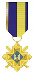 The Cross of Military Merit (Ukrainian: Хрест бойових заслуг, Khrest boiovykh zasluh – literally: 'Cross of merits in combat') is a state award of Ukraine, a distinction of the President of Ukraine established to recognize servicemen of the Armed Forces of Ukraine and other military formations formed in accordance with the laws of Ukraine for outstanding personal bravery and courage or an outstanding heroic act during a combat mission in conditions of danger to life and direct contact with the enemy; outstanding success in commanding troops (forces) during military (combat) operations.