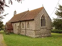 The Church of England parish church of the Nativity of the Blesséd Virgin Mary is a small flint building.[2][3] The church existed by the middle of the 12th century and the blocked-up Norman north doorway survives from this time.[2][3] In the 13th century the chancel arch was rebuilt and the present south doorway was added. In the 14th century the chancel was rebuilt, made taller than the nave and given Decorated Gothic windows. The internal and external fabric of the building were repaired and renewed several times in the 17th and 18th centuries and notably in 1835–39 by one Richard Clark of Wallingford, whose work included renewal of the box pews and three-decker pulpit.[2]