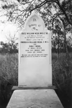 The graves with headstones represent only a small proportion of burials in the cemetery. The variety of material used in headstones is varied and ranges from polished granite to marble, sandstone, sheet metal, cast iron, concrete and tiles. The headstones show several stages of decay with sandstone weathering and marble deteriorating in the tropical heat.[1]