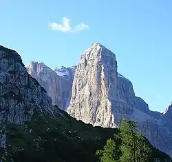 Crozzon di Brenta (3,135m) is a mountain in the Brenta Group of the Southern Limestone Alps in Trentino, Italy. It has three summits and is the most popular destination for mountaineering in the Brenta Group. It is connected to its parent peak Cima Tosa by a short ridge.[1]