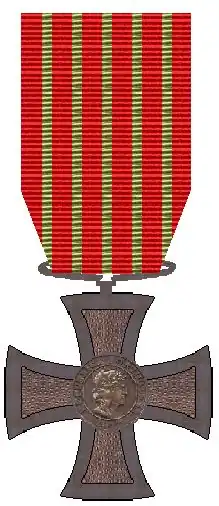 1. ^ Portuguese: Cruz de Guerra Class I – Device is a golden cross with a laurel wreath