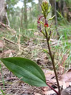 - ^ a b Jeanes, Jeff. "Cryptostylis leptochila". Royal Botanic Gardens Victoria. Retrieved 28 June 2018.