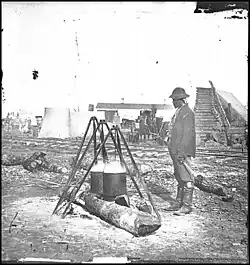 Frontier conditions were varied in the Antebellum United States, greatly influencing the availability of foodstuffs. The frontier economy was based on hunting and foraging. Early settlers of the frontier depended highly on wild buffalo and black bears, relying on smoking jerky to preserve the meat.[52] Frontiersmen, unlike the rest of the antebellum United States, had to rely more on water; however, they also drank tremendous amounts of whiskey, which was an accepted stimulant, anesthetic, disinfectant, and tranquilizer. An Anglican priest noted of frontiersmen that "they went out to revelling, drinking, singing, dancing, and whoring, and most of the Company were drunk before I quitted the spot."[53]