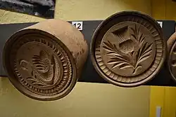 Commercial bakeries developed in urban areas during the nineteenth and early twentieth century to satisfy the need of urban dwellers to bake their own bread. They would bring their home-prepared dough to the bakery in baking tins and would pay the baker for baking it. The reason for this is that town houses were fitted with iron ovens attached to kitchen ranges which were not regarded as 'good bakers of bread'. The Derwen Bakehouse was one of three such bakeries in Aberystwyth. It served the local community from around 1900 to 1924 and was re-erected in the National Museum of History during the mid-1980s. It is a functional bakery that allows visitors to the Museum to see bakers at work using traditional wooden appliances, mixing dough and using the large brick oven in the traditional way.[85]