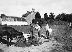 Central Pembrokeshire, from the River Cleddau estuary to the west coast, grows cereals for cattle,[24] while most coastal farms are laid down to 50% arable land and with 40% under short ley farming, with 10% permanent pasture close to the farm. The arable rotation often included early potatoes, in the first and second years, sometimes with sugar beet or broccoli in the same year, when the potatoes are taken out in June, then three corn crops, the last under sown with a three-years ley, the sequence may be varied, depending on the price of early potatoes, broccoli and sugar beet.[5] Oats are the most popular crop, followed by early potatoes, barley for seed, wheat and sugar beet.[4]