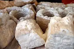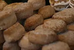1. ^ These include bread with such colorful names as the Fabiola, the Lechuguino, the bread of four quarrymen, the bread of pulley, the far of flame, the rustic bar, and the bread of tables. Valladolid is the first region in Spain to have been given the right to use a unique designation for "bread of Valladolid"