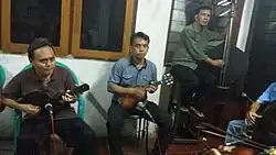 ![]() The instrument being played as part of a keroncong group. The Cuk is on the left and the Cak is on the right. | |