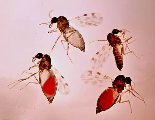 - ^ a b Mellor PS, Boorman J, Baylis M (2000). "Culicoides biting midges: their role as arbovirus vectors". Annual Review of Entomology. 45: 307–40. doi:10.1146/annurev.ento.45.1.307. PMID 10761580.