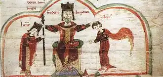 - In the panegyric chronicle De Rebus Sicilis (1196) of Peter of Eboli, dedicated to Henry VI, Holy Roman Emperor (reigned 1190–97), Frederick's death is described in the following verses: