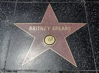 In 2003, Spears received a Star on Hollywood Walk of Fame (Recording Category) at the age of 21, making her the youngest singer to be inducted.[55]