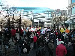 Demonstrators in Calgary, Alberta, protesting the coalition of opposition parties attempting to take control of Parliament during the 2008 Canadian parliamentary dispute