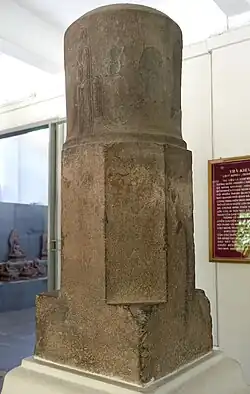Mukhalinagas were of two types: lingams carved with the deity's face and koshas—ornamental covers for lingams. Koshas were made of gold or silver, depicting one or multiple faces of the god, and inlaid with precious and semi-precious stones (rubies, diamonds, sapphires, topazes, and quartz). Multi-faced koshas had four, five, or six faces, symbolically guarding different directions and regions of Champa. Over time, koshas themselves became objects of worship, venerated alongside the lingam. Koshas were used in religious processions, representing their lingams, and are mentioned only in royal inscriptions, adorning lingams in royal temple complexes like My Son, Po Nagar, and Dong Duong.[84][85][86]