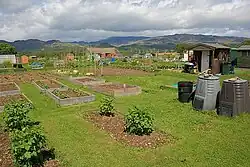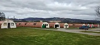 The military stopped using Cultybraggan in 2004, and it was sold for £350,000 to the Comrie Development Trust in 2007 through a community right-to-buy scheme.[28][29] A community orchard was opened in 2010[4] and a set of allotments have also been built.[5] The trust has received funding for the redevelopment of Nissen huts within the camp, from sources such as the National Lottery Heritage Fund and Historic Scotland.[30][31] Huts have been converted into self-catering holiday accommodation,[30][31] including rental accommodation hosted on Airbnb,[32] and as locations for startup companies.[3][28] The trust imposes low rents on businesses to encourage them to stay in Cultybraggan and take care of the huts they are located in.[3] Cultybraggan has been used to host historical reenactments[11] and in 2014 an exhibition by the Edinburgh College of Art.[33] The former guard house was opened as a museum in 2022.[34]