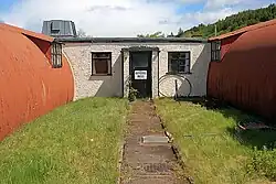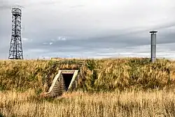 As part of Britain's response to the Cold War, new structures were built at Cultybraggan. Construction of an underground Royal Observer Corps (ROC) monitoring post began in August 1960.[5] Cultybraggan was selected as the location for a subterranean Regional Government Headquarters (RGHQ) bunker in the late 1980s.[23] Construction of the bunker was completed in 1990 in the north-east of the camp, at a cost of £30 million.[24][25] The structure was built over two floors – the upper floor hosted an operations room and communication facilities; the lower floor consisted of accommodation, catering facilities and air filtration units.[24] Upon the bunker's completion, it replaced an older RGHQ bunker at RAF Troywood.[26] In the event of a nuclear war, the bunker would have been used by the Scottish Office as a command and control centre.[24] The threat from the Cold War receded soon after the completion of the bunker, rendering these structures obsolete. The monitoring post was closed by 1992 following the disbandment of the ROC.[5] The bunker remained largely unused[5] and was eventually given to the Ministry of Defence.[27]