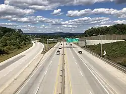 Numerous highways serve Cumru Township, including Interstate 176, U.S. Route 222, U.S. Route 222 Business (Lancaster Pike), U.S. Route 422, Pennsylvania Route 10, Pennsylvania Route 625, and Pennsylvania Route 724. I-176 follows the Morgantown Expressway southward from its northern terminus at US 422 across the eastern portion of the township. US 222 follows a north-south alignment along the western edge of the township. US 422 follows the West Shore Bypass along a northwest-southeast alignment across the northern part of the township. US 222 Business begins along US 222 and heads northeastward along Lancaster Avenue across the northwestern part of the township. PA 10 follows Morgantown Road along a north-south alignment across the eastern part of the township. PA 625 follows New Holland Road along a north-south alignment through the center of the township. Finally, PA 724 follows Philadelphia Avenue along an east-west alignment across the northern part of the township.