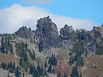 Cupalo Rock is a 6,593-foot (2,010 m) summit located in Yakima County in Washington state. Cupalo Rock is situated two miles north-northeast of Chinook Pass, one mile east-northeast of Chinook Peak, and barely east of the crest of the Cascade Range. The nearest higher peak is Three Way Peak, 0.42 mi (0.68 km) to the west-northwest.[1] Access for climbing Cupalo Rock is normally from the Pacific Crest Trail at Sourdough Gap. Precipitation runoff from Cupalo Rock drains into tributaries of the American River.