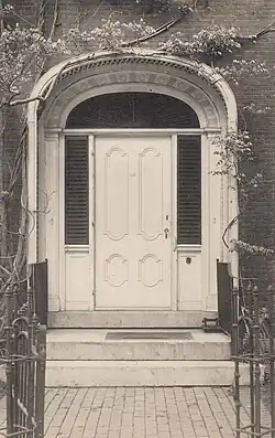 The house is a center entrance four-story brick mansion in the Federal style, with entrances at both the front and sides, and two chimneys on each side. In shape it is a flattened cube, with five windows arranged symmetrically across both front and sides. Its main entry is crowned with a modest fanlight, echoed by a fan-shaped wooden motif atop the window above it. On the grounds, visitors will find a nineteenth-century garden, fruit trees, a privy, cobbled yard and carriage house.